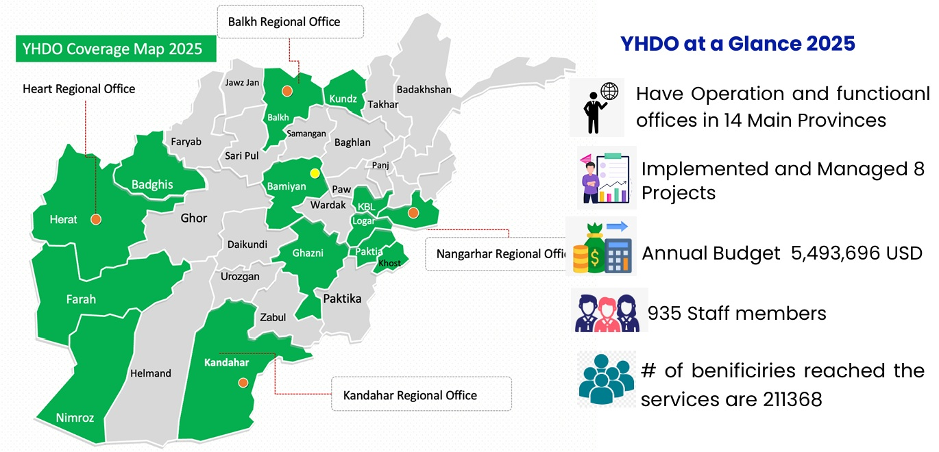 YHDO is operating in 14 provinces of the country and 12 operational offices